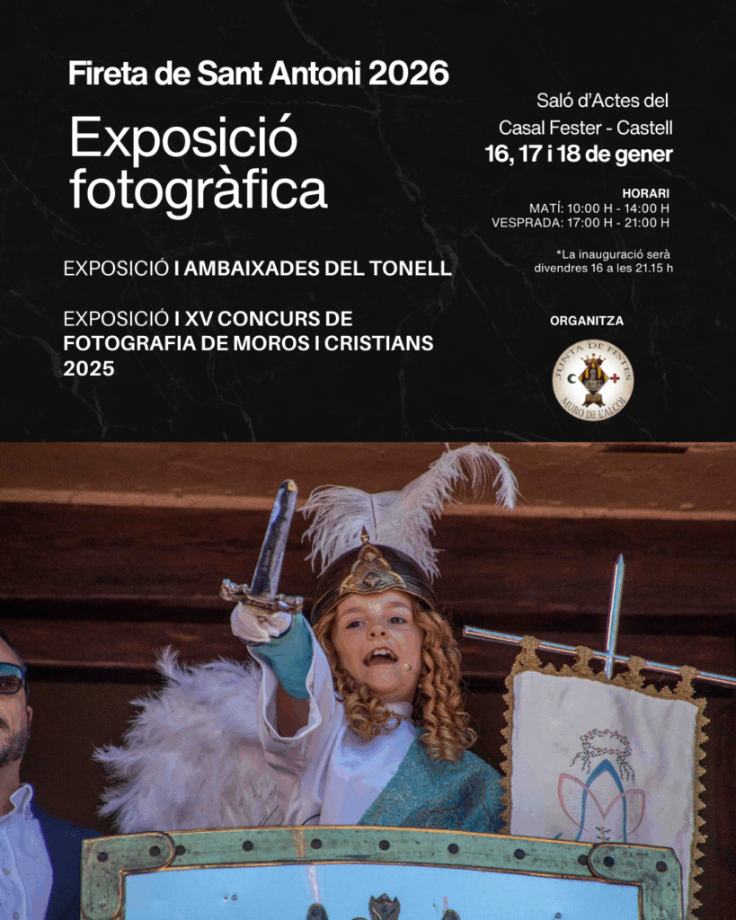 Des de la Junta de Festes s’anima a tot el poble a visitar esta exposició, que posa en valor la fotografia com a testimoni i memòria viva de les nostres festes de Sant Antoni i de Moros i Cristians.